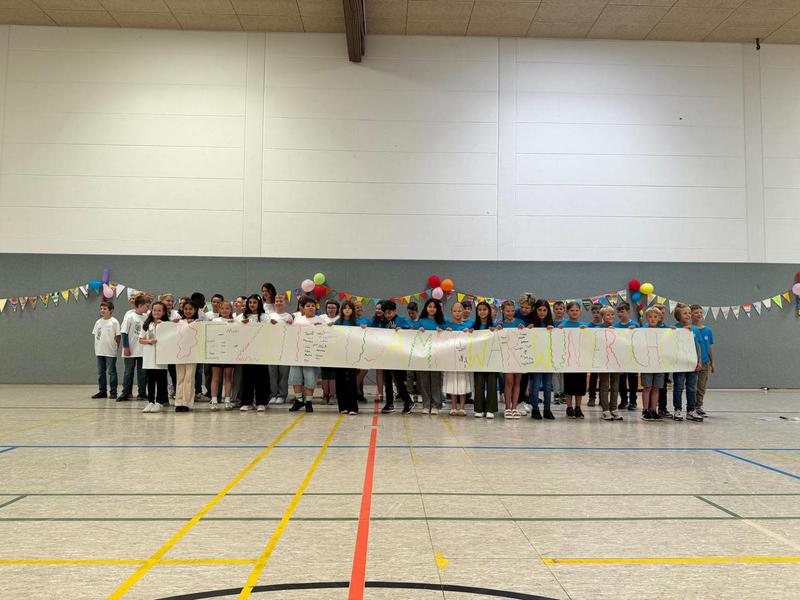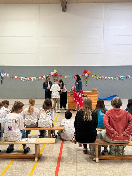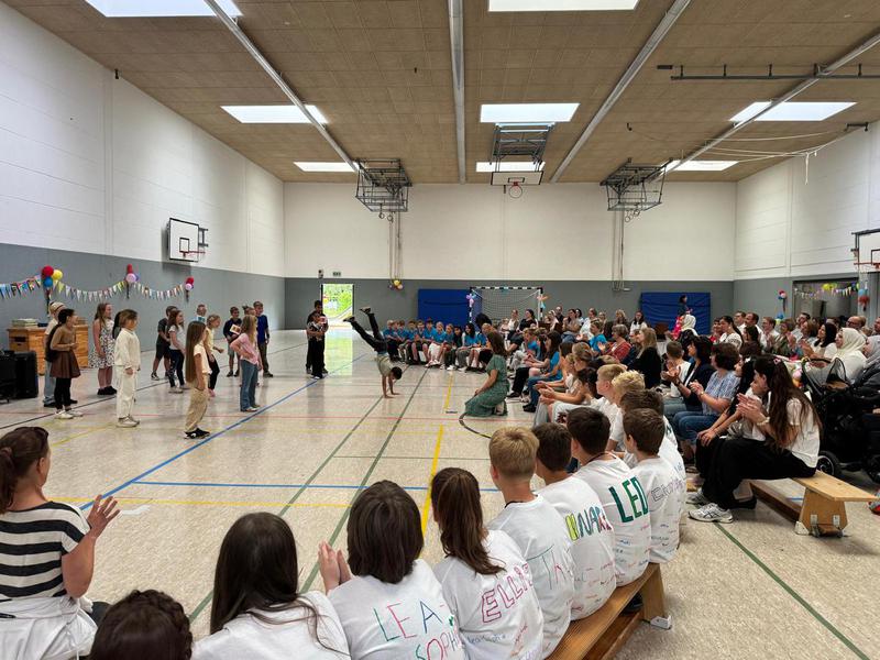 Alle Kinder der vier 4. Klassen erhielten am letzten Schultag ihre Zeugnisse und konnten gemeinsam mit den Eltern die kleine Abschiedfeier in der Turnhalle genießen.