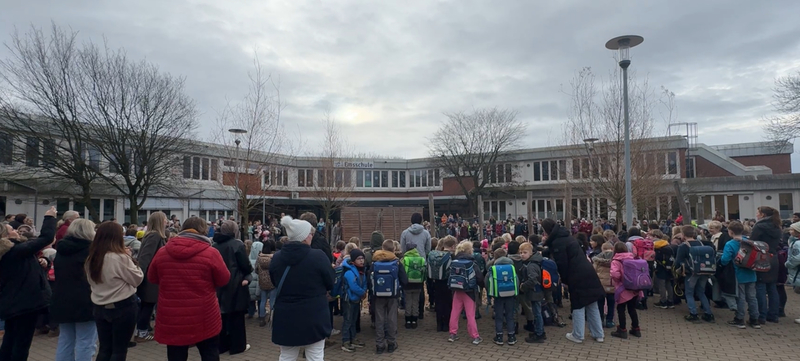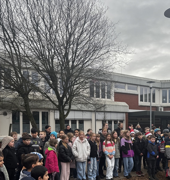 Mit allen Schülerinnen und Schülern haben wir die letzten 10 Minuten vor den Weihnachtsferien gemeinsam auf dem Schulhof gesungen - was für ein toller Abschluss!